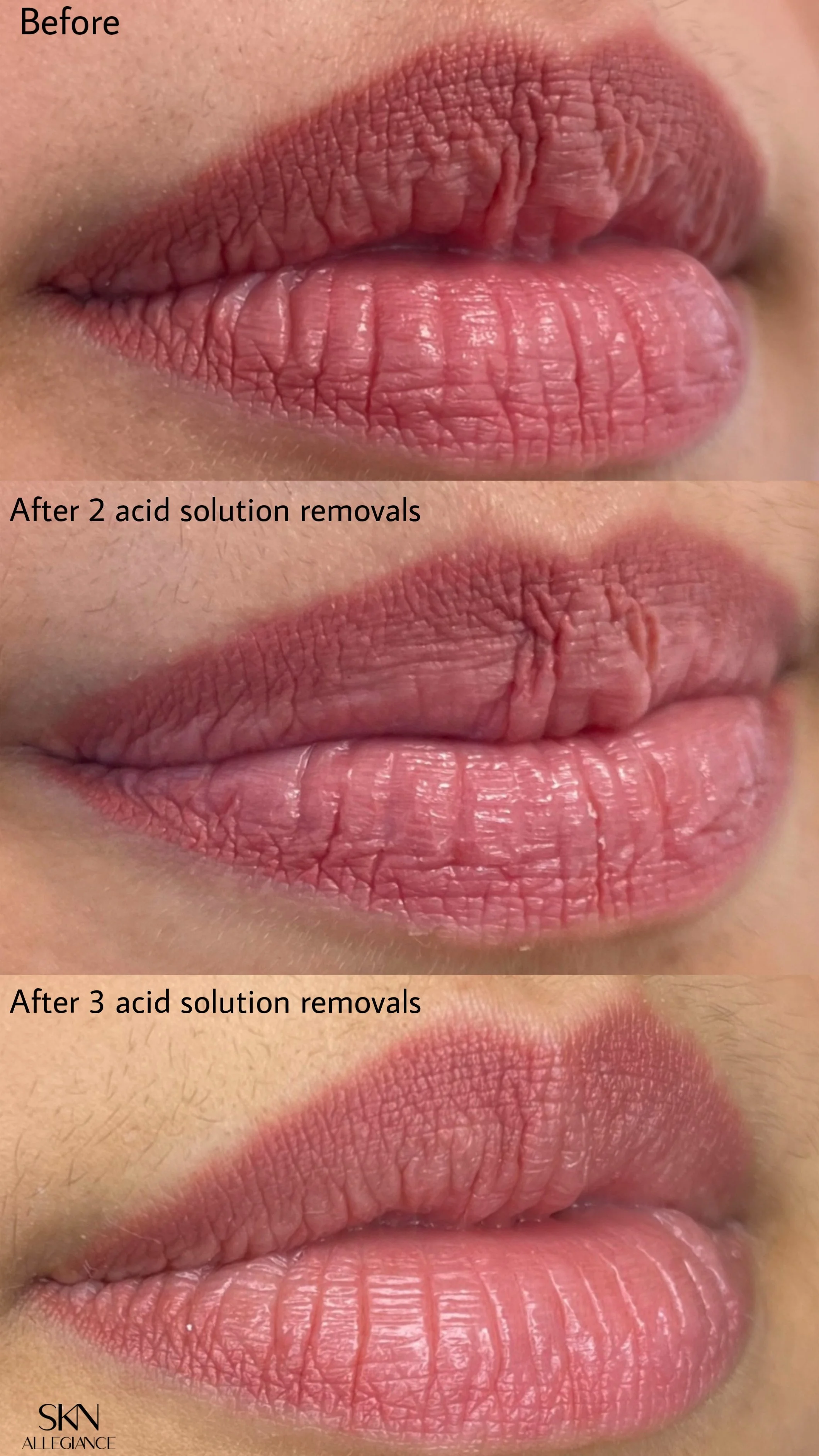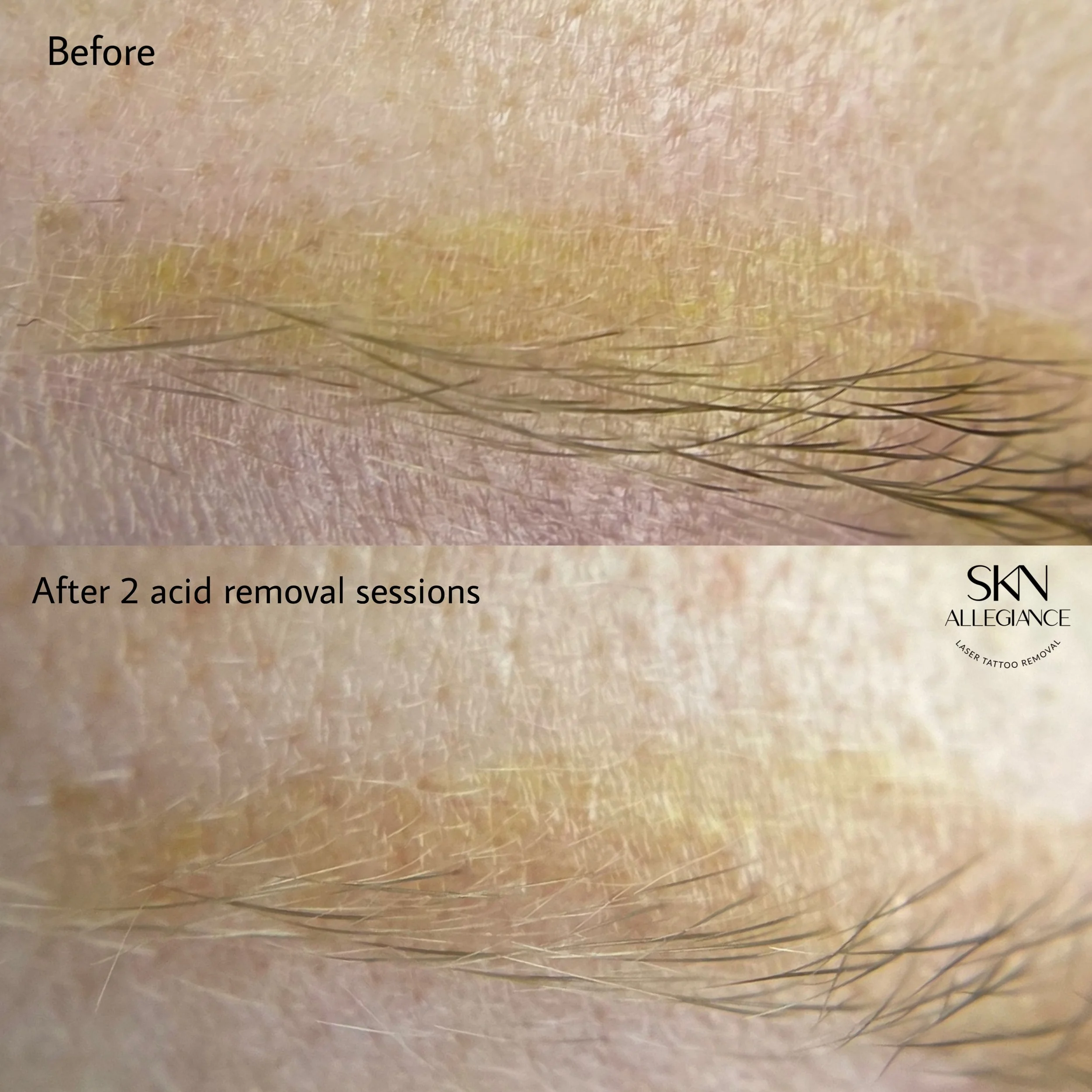In certain cases laser alone cannot remove the ink completely, either due to color, depth, chemical structure of ink or present scar tissue that trapped the ink particles inside. Removal with a specialized solution would be an option in this case. It can be performed alone, before or after laser treatments, or two methods can be alternated. Each case is different and the best protocol will be determined for you at the initial appointment. Solution removal method can be used for any cosmetic tattoos such as eyebrows, lips, eyeliner, freckles. And for traditional tattoos of small size or small parts of a large size tattoo. For this treatment on any area whether permanent makeup or body tattoo (rather rare) we book a laser tattoo removal appointment first and already in person discuss the way we proceed.